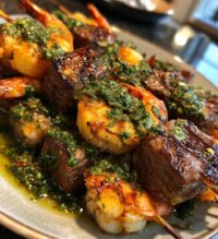 Oh wow, let me tell you about these grilled surf turf skewers with chimichurri! They’re like a summer barbecue dream come true, combining the succulent flavors of juicy steak and tender shrimp, all on one glorious skewer. Picture this: you bite into the perfectly grilled beef, and then just a moment later, you taste that fresh, briny shrimp. And the chimichurri—oh my goodness! It’s the zingy, herby sauce that takes everything to the next level. Trust me, these skewers are not just a meal; they’re an experience that will have everyone at your backyard gathering raving about your cooking skills! Perfect for those sunny days, right?