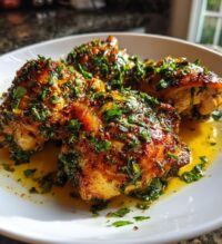 Once your chicken is marinated, heat the vegetable oil in a large skillet over medium heat. When the oil is hot, add the marinated chicken thighs, making sure not to overcrowd the pan. Cook them for about 6-7 minutes on each side until they’re golden brown and deliciously fragrant. Pro tip: to check if they’re done, pierce the thickest part with a knife—the juices should run clear, not pink. Once cooked, take them off the heat, let them rest for a few minutes, then garnish with fresh cilantro before serving. Wow, you’re going to love this!